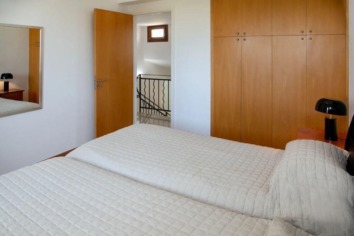 Step inside to discover a beautifully designed interior, tastefully decorated in neutral tones with vibrant accents and high-quality modern fixtures and fittings. The spacious open-plan living, dining, and kitchen area boasts elegant marble flooring, while the bedrooms are finished with warm parquet floors, fitted wardrobes, and stylish bedside cabinets.