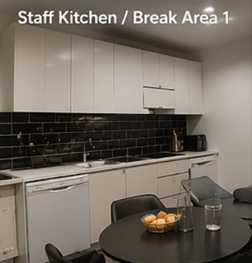 For staff convenience, the business benefits from two separate kitchen/breakout areas, along with male and female bathrooms.