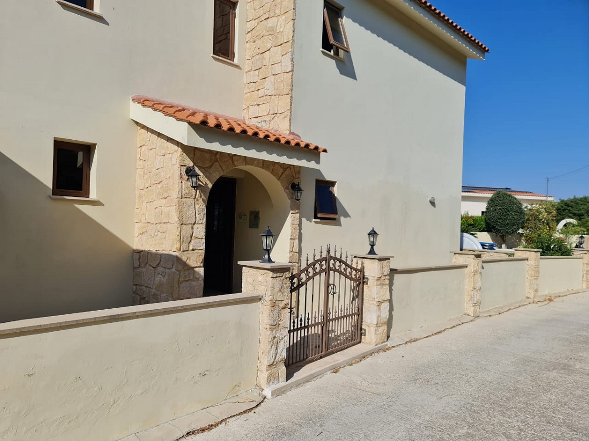 Nestled in the quaint village of Kallepia in Paphos, Cyprus is a charming 3-bedroom villa that exudes comfort and luxury. As you enter the cul-de-sac, you’ll be greeted by the villa’s extra-large plot of over 700m2, ensuring enough space for your privacy and relaxation. You’ll immediately notice the landscaped gardens that surround the villa, providing a serene and tranquil environment.