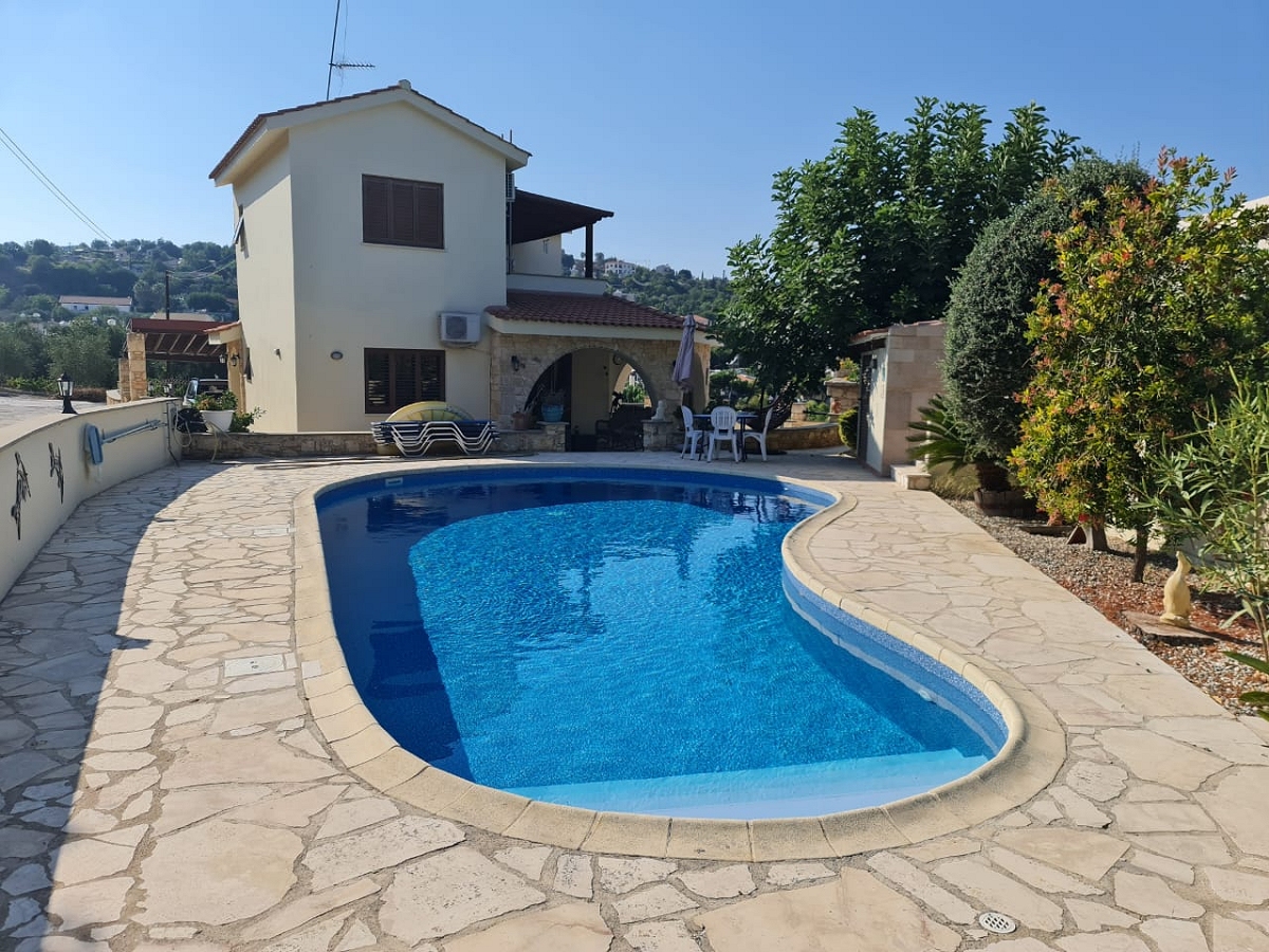 A lovely three bedroom villa located in the peaceful village of Kallepia Paphos. Only 5min drive from the renowned Minthis Golf Club and 15min drive from Paphos town. The beautiful villa is secluded in a cul-de-sac surrounded in nature with its lovely verandas and garden/mountain views.