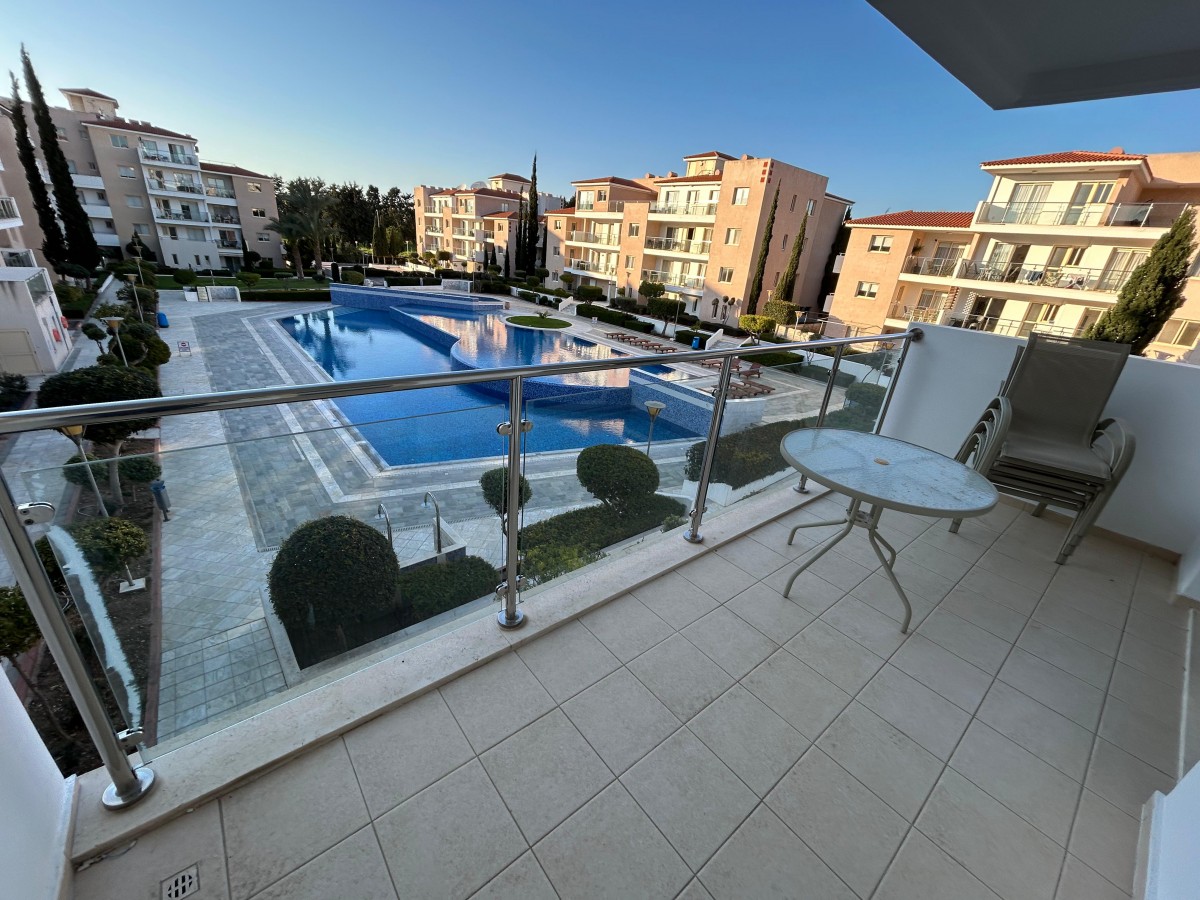 This luxury 2-bedroom fully furnished apartment is designed within a gated, resort-style community, featuring a spacious open-plan living and dining area with large windows and a private balcony overlooking two large outdoor swimming pools, alongside a modern fully equipped kitchen, a master bedroom with en-suite bathroom, and a second bedroom with a separate bathroom; residents enjoy premium amenities including a heated indoor pool, a full spa with sauna and steam room, a fully equipped gym, landscaped gardens, and a children’s playground, as well as on-site conveniences such as a kiosk mini market, a restaurant, and a coffee shop, all supported by 24/7 security, surveillance, and private parking, creating a secure, comfortable, and lifestyle-focused living environment that blends the feel of a private home with the atmosphere of a high-end resort.